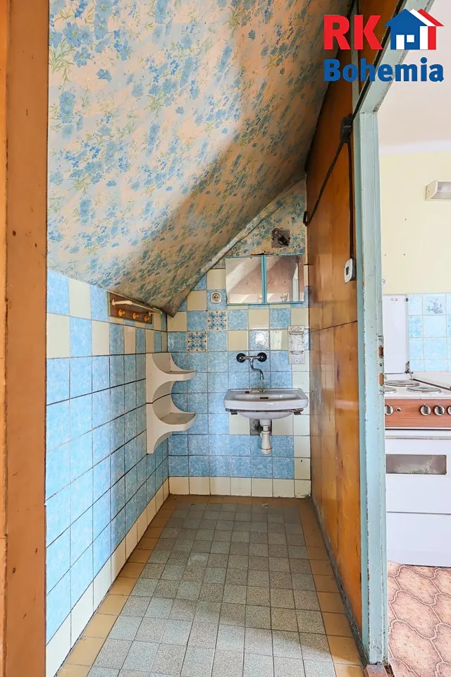 V 1.NP se nachází zádveří (cca 4,4 m2), hala (cca 9,5 m2), obývací pokoj (cca 17,9 m2), ložnice (cca 17,3 m2), koupelna s vanou, s WC a umyvadlem (cca 4 m2), kuchyň (cca 17,4 m2), spíž (cca 2,5 m2) a schodiště do sklepa a do 2.NP. Ve 2.NP se nachází 3 pokoje (cca 20,7 m2, cca 18,7 m2, cca 13,1 m2), spíž s umyvadlem (cca 5 m2) a chodba (cca 11,4 m2).