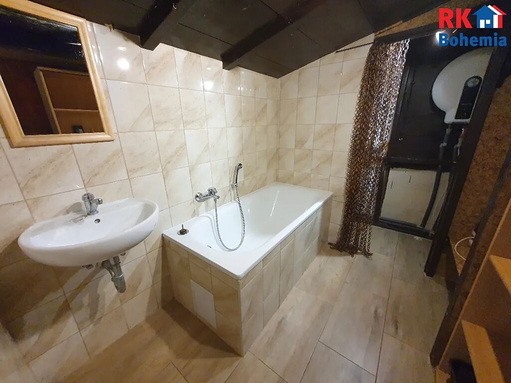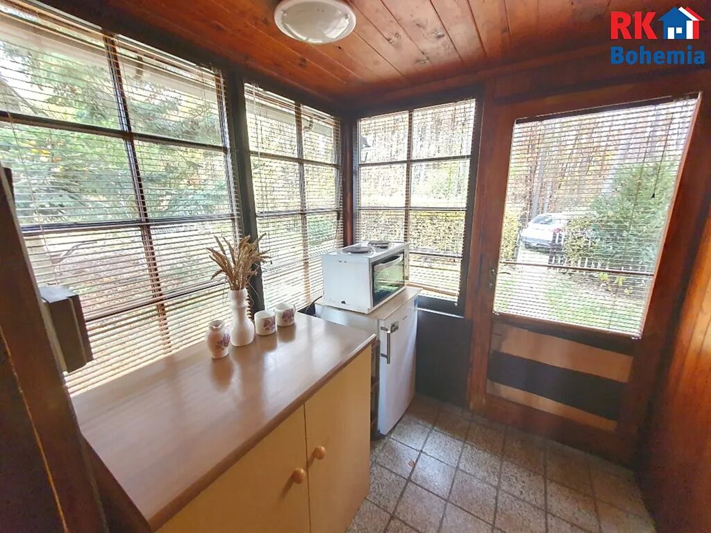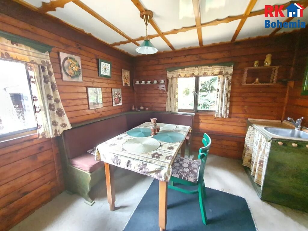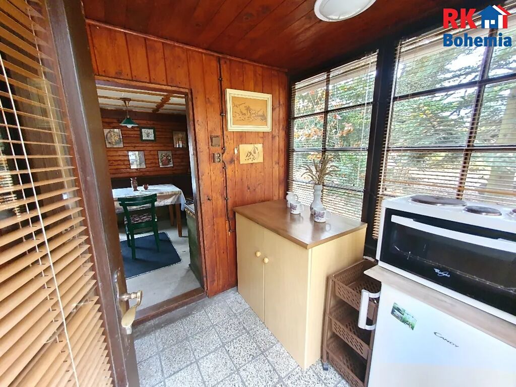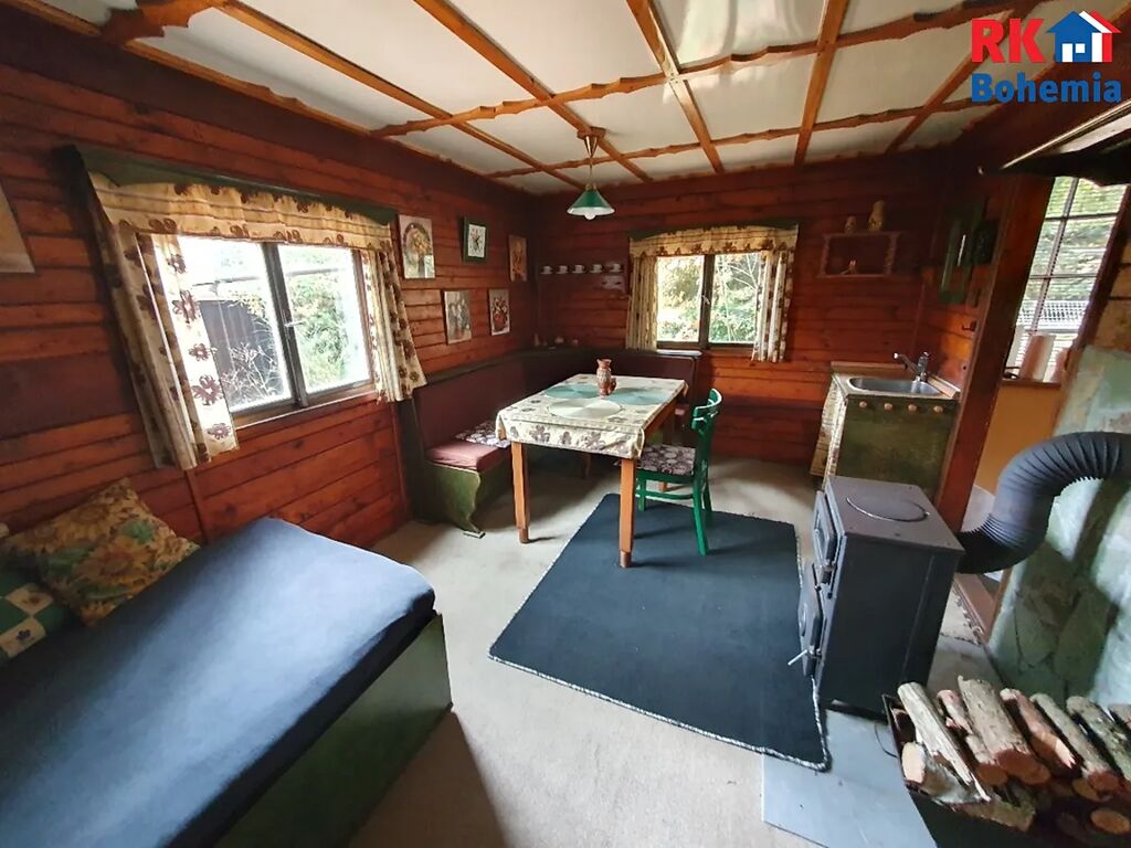Dispozice: veranda, obytná místnost s kuchyňským koutem, ložnice, ze zahrady samostatný vchod do koupelny s vanou a toaletou a malá teráska s posezením. Na parcele zahradní domek s vnitřním sezením. Prodej včetně veškerého zařízení a vybavení. Na pozemku udržovaná okrasná zahrada, vzrostlé stromy. Vytápění - tuhá paliva, alternativa elektrický radiátor, teplá voda - průtokový ohřívač se zásobníkem. IS - elektřina 220/380V, veřejný vodovod, kanalizace řešena jímkou. K dispozici dokumentace stavby.