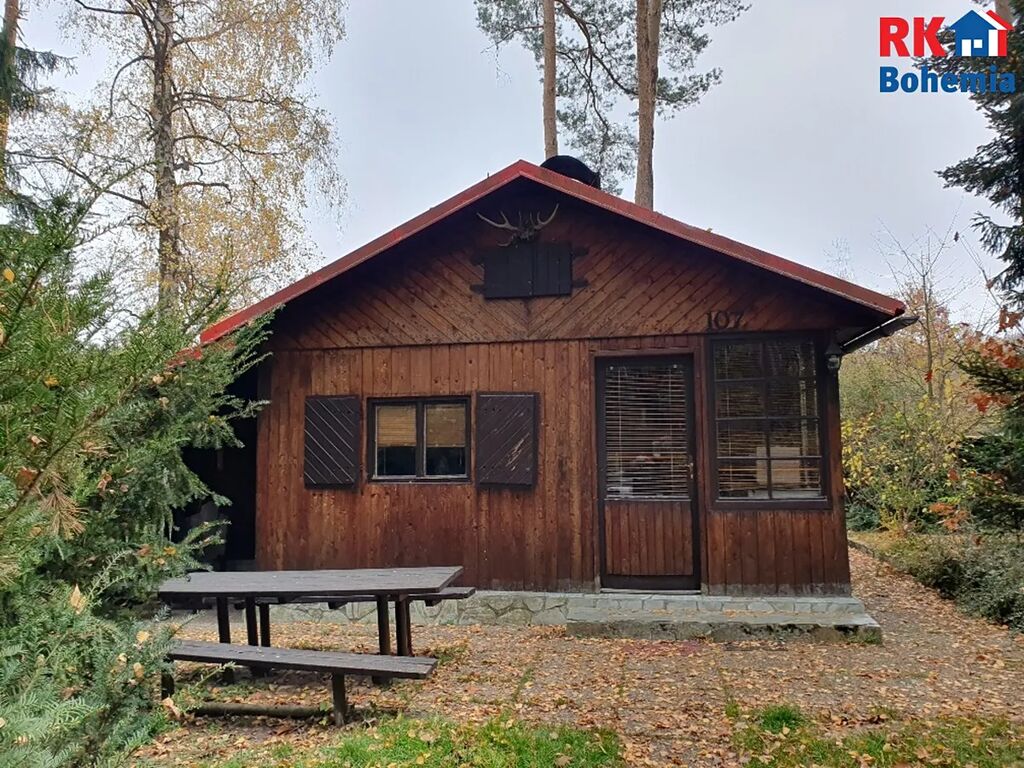 Dřevostavba s betonovými základy umístěná v chatové zástavbě na rovinatém pozemku nad svahem k Drhlenskému rybníku ve vyhledávané rekreační lokalitě.