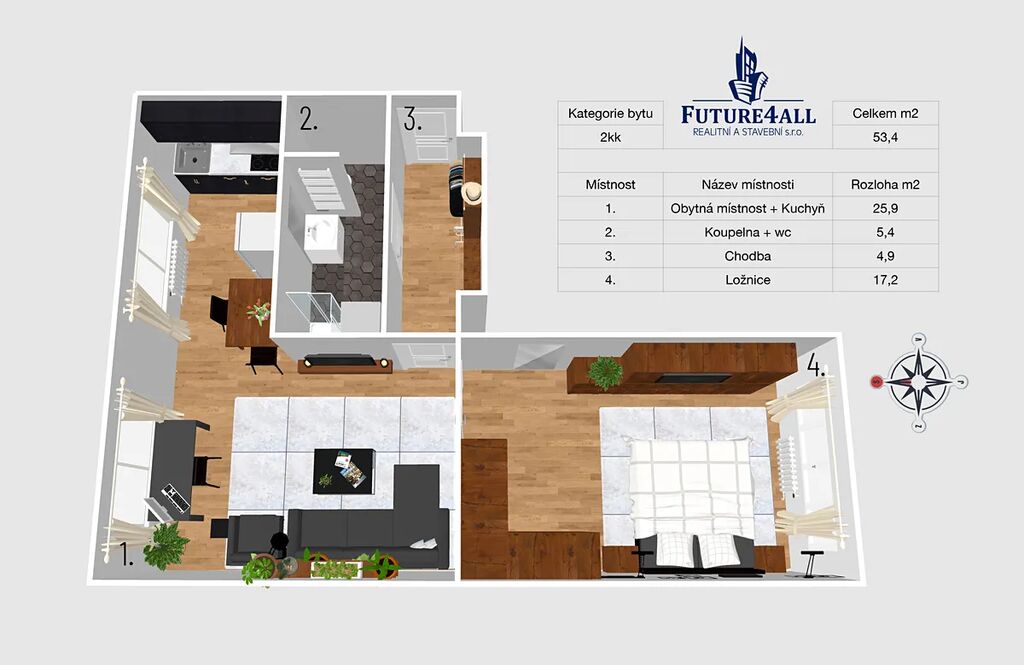 Prostorný a světlý byt 2+kk v atraktivní části Prahy – ihned k nastěhování.