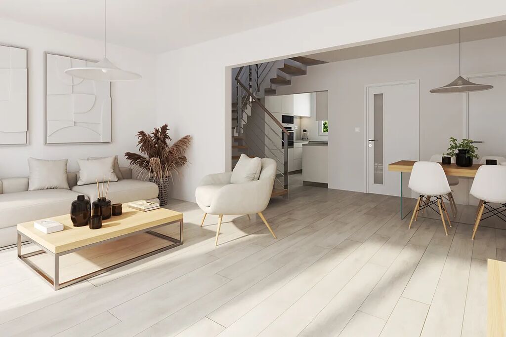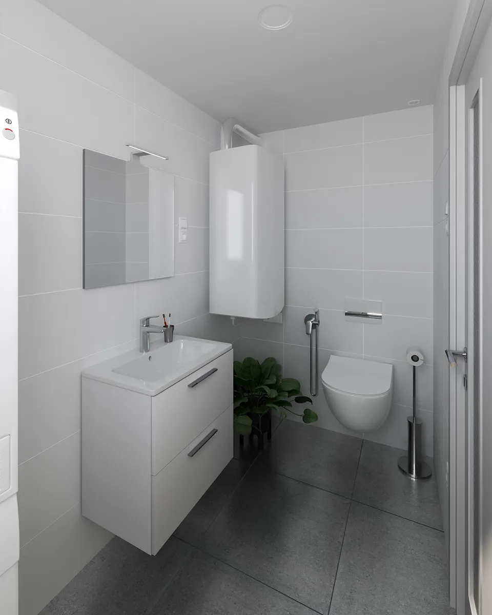 Rodinný dům K 90 je navržen jako jednopodlažní objekt s obytným podkrovím zastřešený sedlovou střechou. V rámci projektu Újezd u Brna je koncipován jako řadový dům nebo jako dvojdům. Součástí domu je garáž, která je od domu provozně oddělena. Jedná se o nejmenší dům z naší nabídky, dispozičně spadá do kategorie 4+kk. Dům je navržen velmi efektivně s minimalizací komunikačních ploch. Hlavní vstup do objektu je z ulice do vstupní haly , ze které je přístupné technické zázemí a WC. Zbývající část 1.NP zaujímá hlavní obytný prostor s jídelnou a kuchyňským koutem. Z tohoto prostoru je po lehkém ocelovém schodišti přístupné 2.NP. Ve 2.NP jsou umístěny tři pokoje a koupelna.