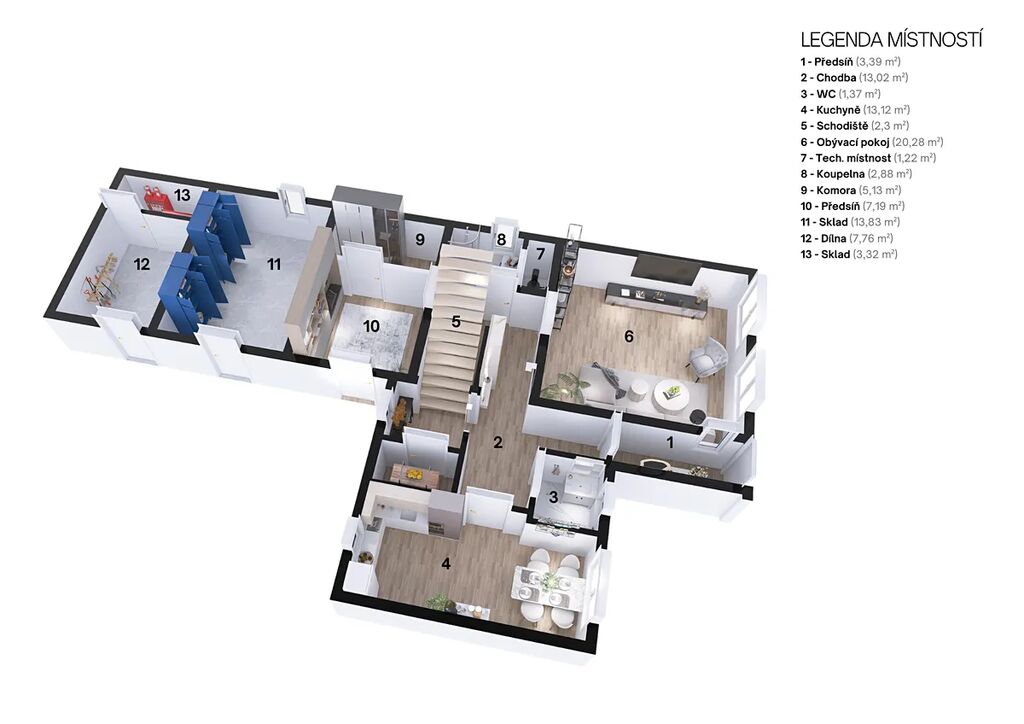 Dům splňuje všechny představy o moderním a pohodlném bydlení – nabízí dostatek prostoru, promyšlené řešení interiéru a útulnou atmosféru, díky které se zde budete cítit jako doma od prvního okamžiku.