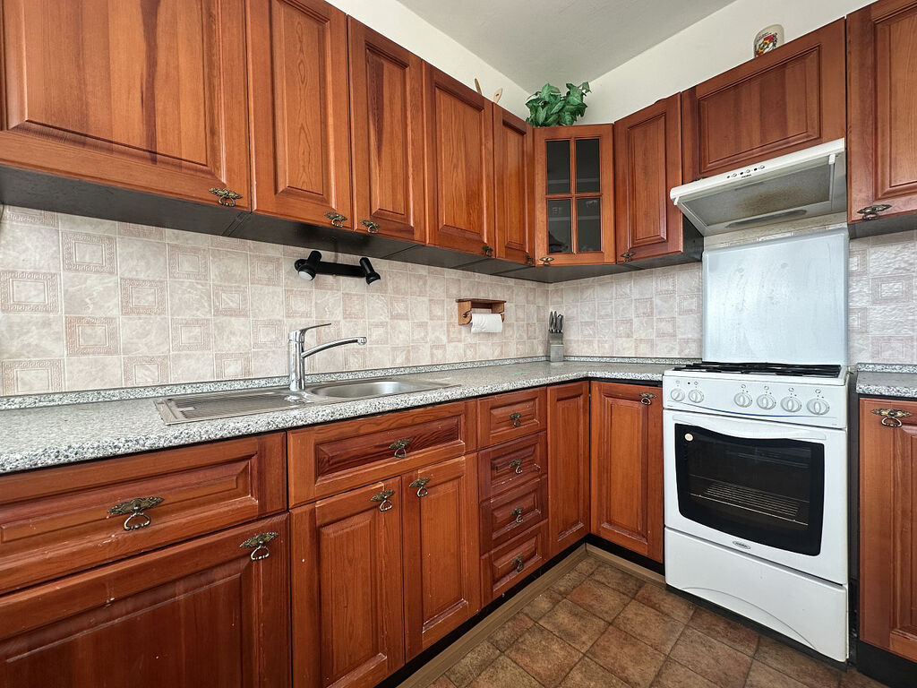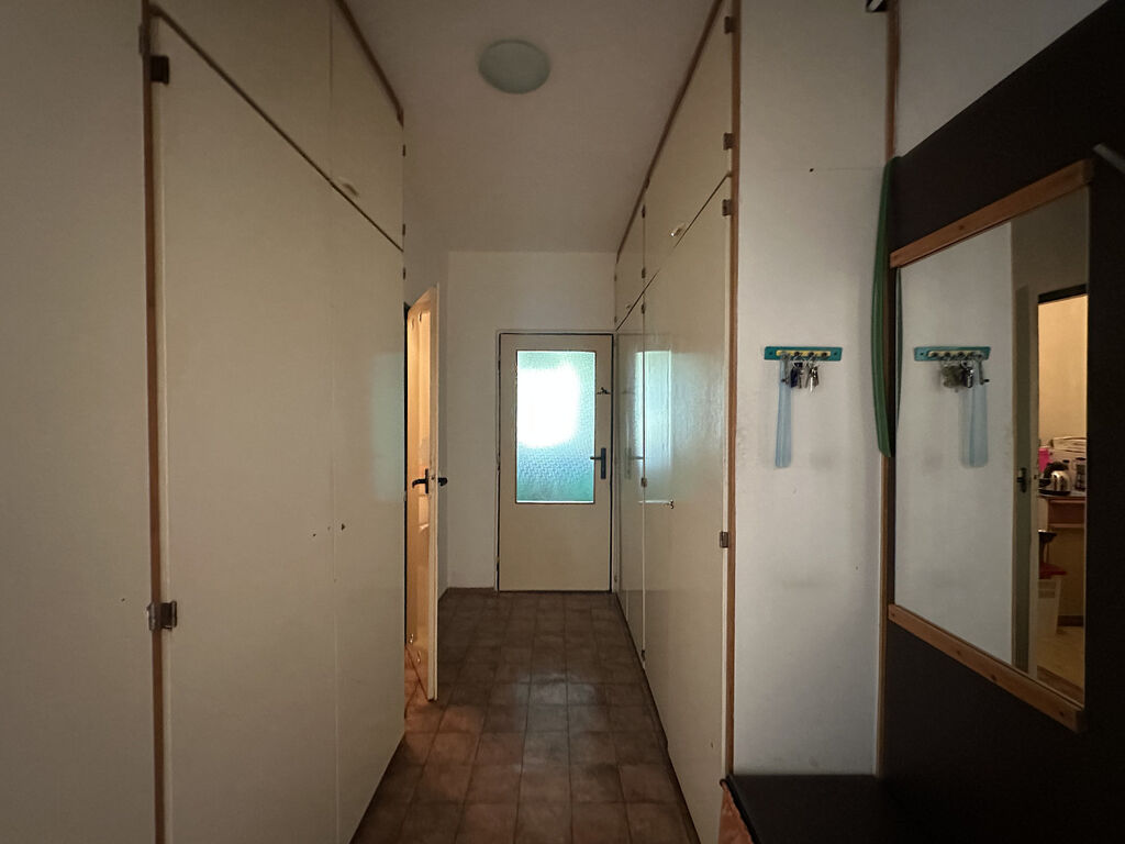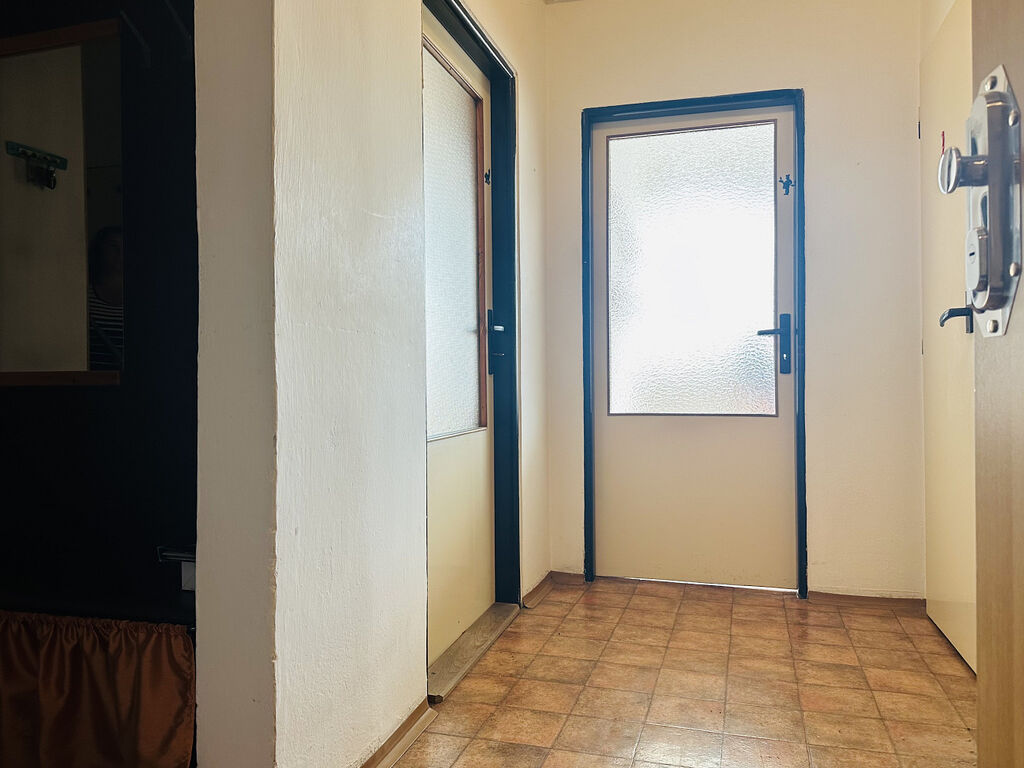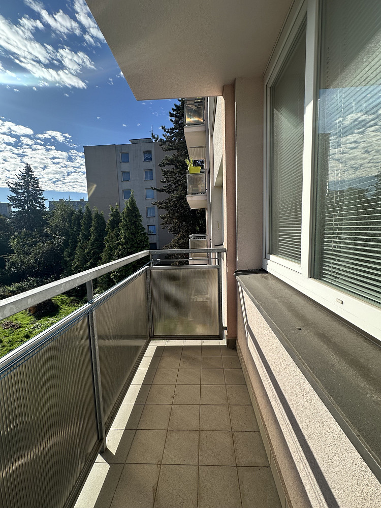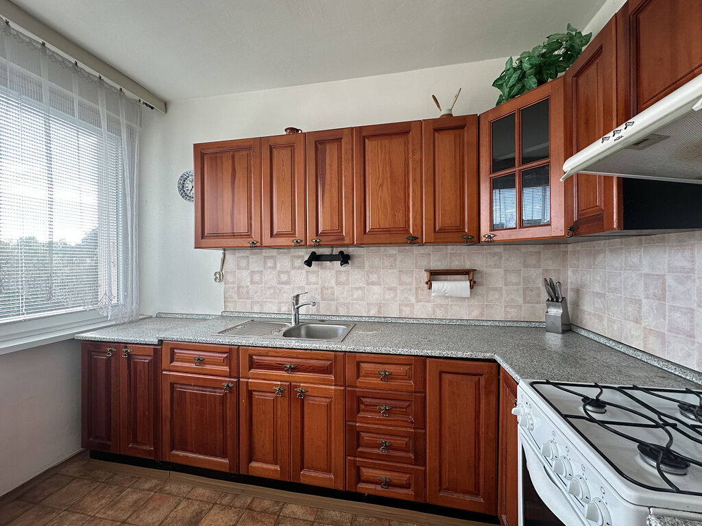 Jedná se o klasickou dispozici bytu 3+1 se samostatnou kuchyní a dále se sousedícím obývacím pokojem s balkonem, kde najdete vstup do většího pokoje / ložnice a dále průchod – propojeno s malým pokojem, jež má vstup i s předsíňové haly. Koupelna i WC jsou umístěny v těsném sousedství, ale samostatné / zcela odděleny. Jedinečnou předností bytu je větší předsíň se vstupní halou a praktickou bytovou komorou. Orientace bytu jihovýchod – dopolední sluníčko. Důraz klademe na velice slušnou a stálou klientelu v domě – doporučujeme jako klidné rodinné bydlení.