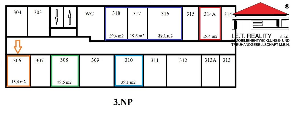 Pronájem kanceláře č. 306, 18,6 m², situované ve 3.NP komerční budovy na ul. Kroftova v Brně. Jedná se o jednu samostatnou místnost s vlastním vstupem. V rámci podlaží je k dispozici sdílené sociální zařízení s kuchyňkou. Kancelář má vlastní zabezpečovací okruh s přístupem 24/7 a k pronáimu je volná ihned. Možné je využívat také omezenou kapacitu parkovacích míst.