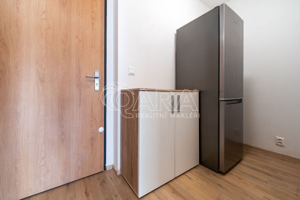 Pronájem praktického a částečně vybaveného zděného bytu v klidné lokalitě - V Hliníkách, moderně vybavená kuchyň s vestavěnými spotřebiči (indukční deska, trouba, digestoř, samostatně stojící lednice v chodbě...). Navazuje jídelní kout a obývací pokoj se sedačkou, ložnice s vestavěnou skříní, lodžie 9 m2 (jihozápad) s výstupem z obou pokojů. V prostorné předsíni další vestavěné skříně, dostatek úložného prostoru, koupelna se sprchou, samostatné WC. Topení ústřední dálkové, plastová okna, vertikální žaluzie. Byt se nachází ve 3.NP, novostavba domu s nízkými náklady na bydlení. Nájem 13.900,-Kč/ měsíc + zálohy na energie 3.500,-Kč/ měsíc, rezervace 13.900,-Kč, vratná kauce 28.000,-Kč.