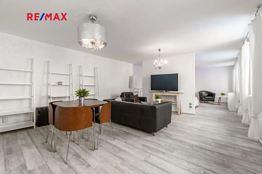 Současná dispozice nabízí vstupní předsíň, prostorný obývací pokoj oddělený částečnou příčkou od ložnice, samostatnou kuchyni se spotřebiči a koupelnu se sprchovým koutem a WC.