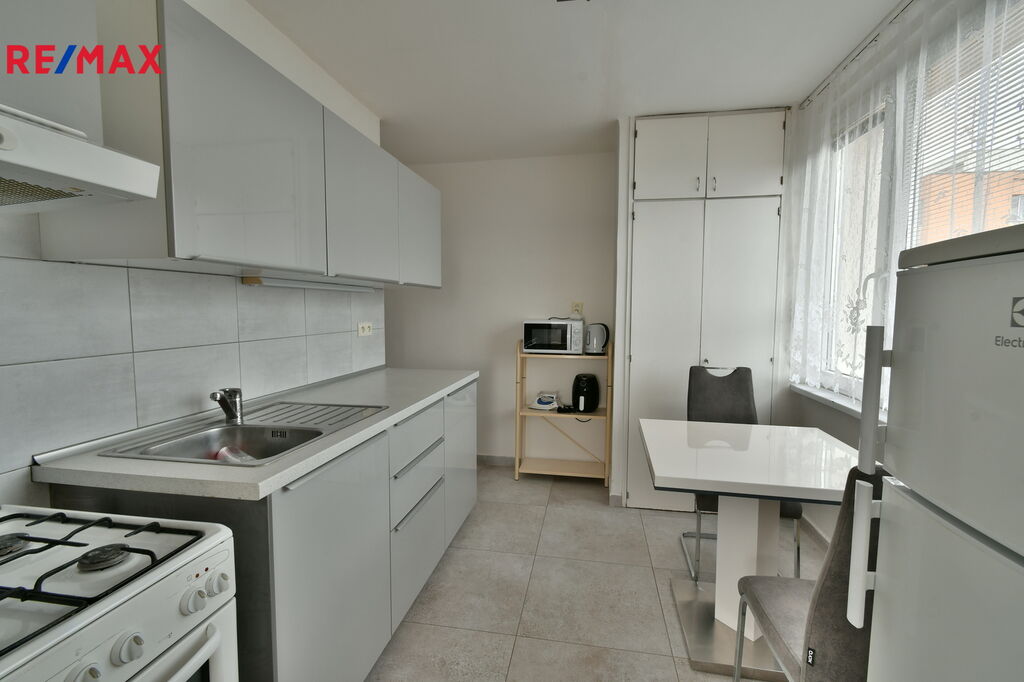 Byt má čistý interiér s dostatkem přirozeného světla, kuchyň, útulný obývací pokoj s panoramatickým výhledem a dvě oddělené ložnice, celkem 71m2. V bytě je zděné jádro, nová koupelna, kuchyně, podlahové krytiny, plastová okna, atd. Orientace oken je na jihovýchod a jihozápad. Vytápění a ohřev teplé vody je dálkově z Elektrárny Opatovice. Byt je vybaven ledničkou s mrazákem, plynovým sporákem, pračkou, mikrovlnkou a nábytkem viz fotografie. Jsou zde nízké náklady na topení, které je dálkové. Byt je velmi tichý bez rušivých vlivů. Jedná se o velmi atraktivní lokalitu Pražského Předměstí, kde se tak často byty k pronájmu nevyskytují.