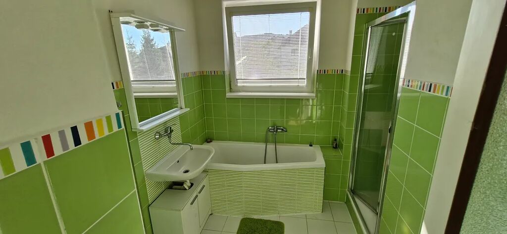 koupelnu s vanou i sprchovým koutem
