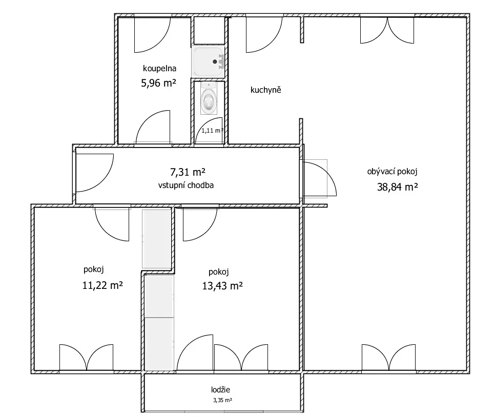 Dispozice bytu zahrnuje: