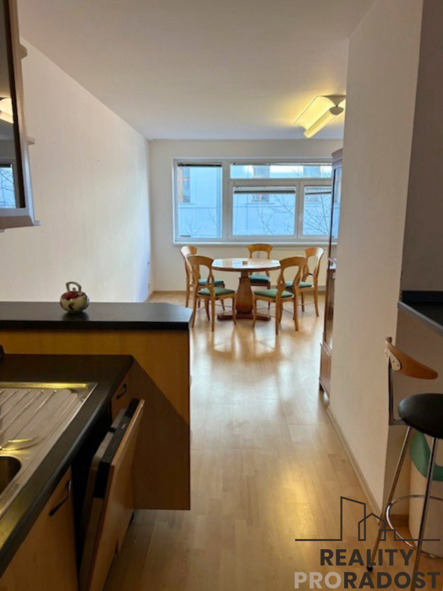 Byt je plně vybaven a připraven k nastěhování. K dispozici je sklep, výtah, recepce, bezbariérový přístup a také soukromé parkovací stání přímo pod domem.
