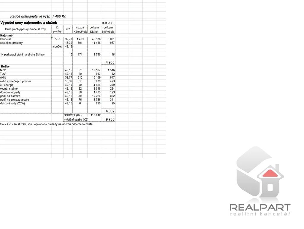(+ záloha na služby 4.209 Kč , uvedené ceny jsou bez DPH)
