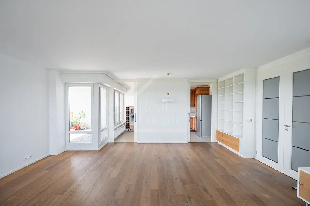 Byt disponuje neprůchozími pokoji a je o celkové ploše 172 m² včetně 24 m² teras. Nachází se ve 2. patře (3. NP) pětipodlažního domu z roku 2004.