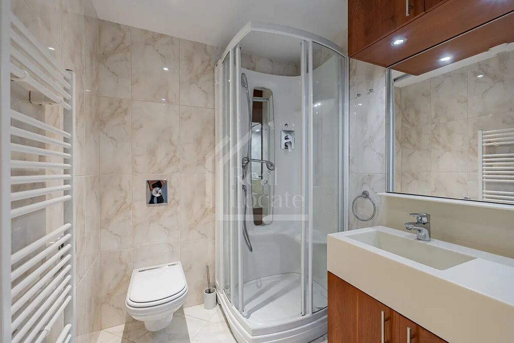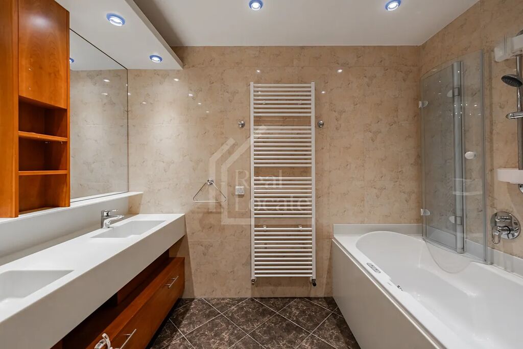 - 2 koupelny (5,4 m² a 3,47 m²) – jedna se sprchovým koutem, druhá s vanou a dvěma umyvadly