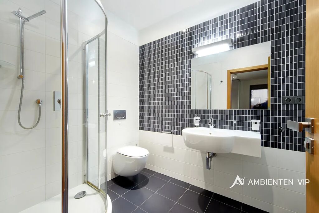 Koupelna je vybavena vanou, sprchovým koutem, umyvadlem, WC a je zde také pračka. Druhá koupelna je přímo k ložnici.