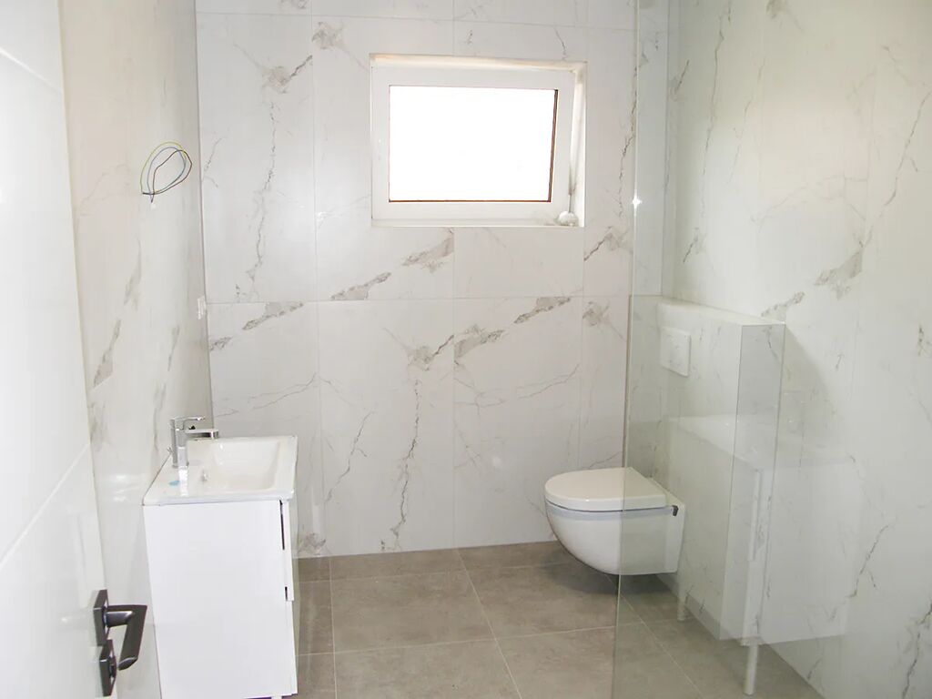 V rodinném domu se nachází zádveří (5,8 m2), na které navazuje chodba (9,0 m2), obývací pokoj s kuchyňským koutem (32,0 m2), ložnice se šatnou (17 m2), další dva samostatné pokoje (11,8 m2 a 10,4 m2), koupelna se sprchovým koutem a WC (6,9 m2), další samostatné WC (1,3 m2) a technická místnost (5,3 m2), ve které je umístěna jednotka tepelného čerpadla, el. bojler a je zde i prostor pro umístění pračky. Objekt není podsklepen.