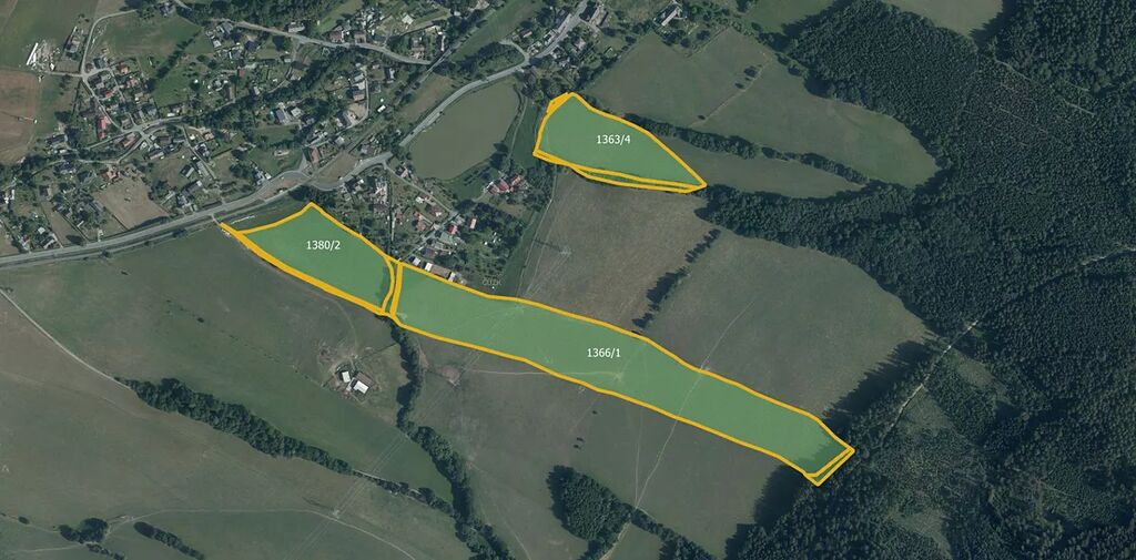 Pozemky se nacházejí na parcelách č. 1353/13, 1363/3, 1363/4, 1364/2, 1364/3, 1366/1, 1378/1, 1380/2 a 1381/1. Většina výměry připadá na travní porosty a ornou půdu, což zajišťuje široké možnosti využití.