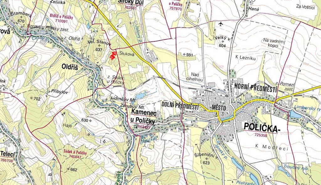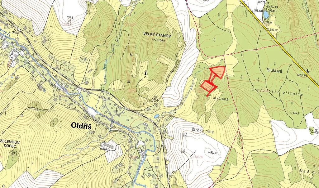 Předmětem prodeje jsou parc. č. 1273, 1274, 1277 a 1283/7 zapsané na LV 757 v KÚ Oldřiš u Poličky. Celková výměra je 14 976 m2. Jedná se převážně o trvalý travní porost o výměře 14 131 m2. Na parcelách 1273 a 1274 je ostatní plocha s výměrou 845 m2.
