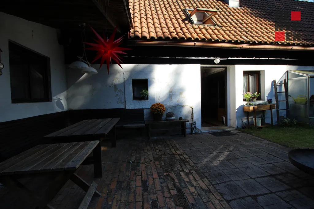Kromě hlavní budovy se na pozemku nachází dřevěná kůlna, zvonička a nový dřevěný zahradní domek. Celková rozloha pozemků, na kterých stojí dům, je 1.898 m2. Součástí prodeje je i pozemek o velikosti 432 m2, který se nachází od nemovitosti přes komunikaci. Je určen pro parkování případných hostů.