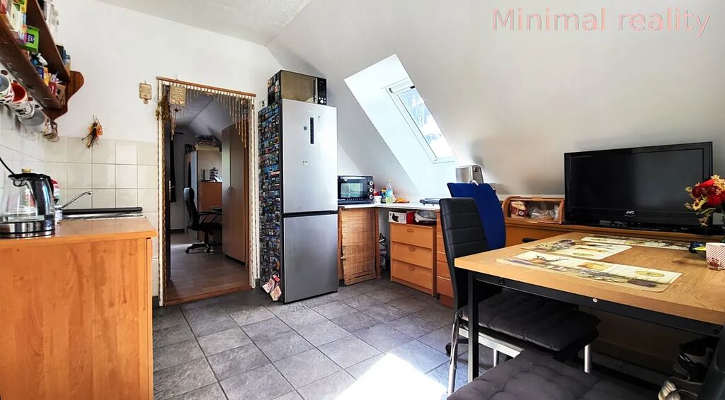 Nabízíme k prodeji prostorný a světlý podkrovní ateliér o dispozici 2+kk a podlahové ploše 47 m², umístěný v 2. nadzemním podlaží udržovaného cihlového domu na ulici Borečkova, Praha – Kyje.