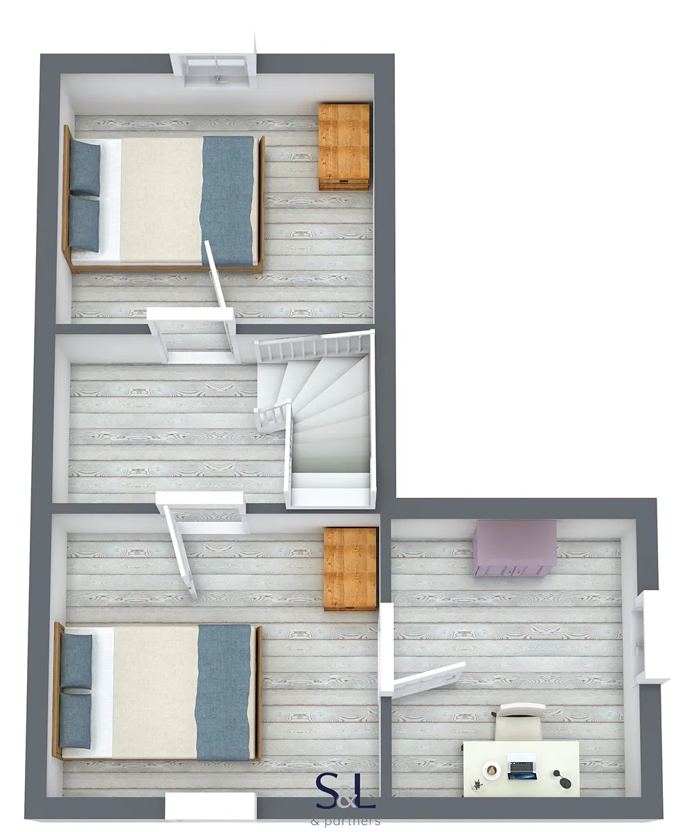- V podkroví jsou pak dva samostatné pokoje, ideální pro rodiny s dětmi nebo partu přátel.