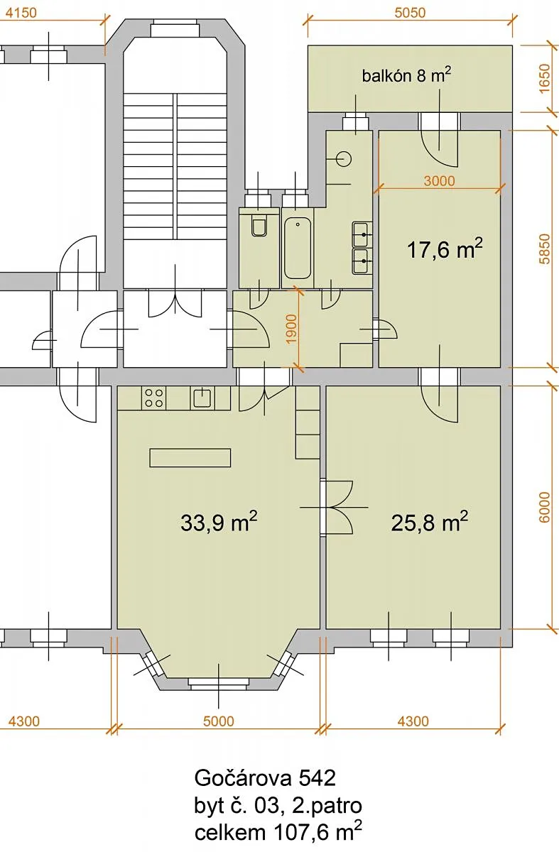 Krásný byt 3+kk cca 100 m2 + balkon 8m2 ve 2.patře velmi dobře udržovaného domu bez výtahu v Gočárové ulici, Hradec Králové.