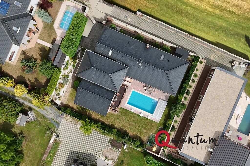 Dispozice domu je vhodná pro vícečlennou rodinu, případně kombinaci rodinného bydlení s pracovním zázemím. Najdete zde dostatek prostoru pro každého – s možností pracovny, hostinského pokoje, samostatné ložnice pro každé dítě, šatny, fitness apod. Samozřejmostí je garáž a technické zázemí.
