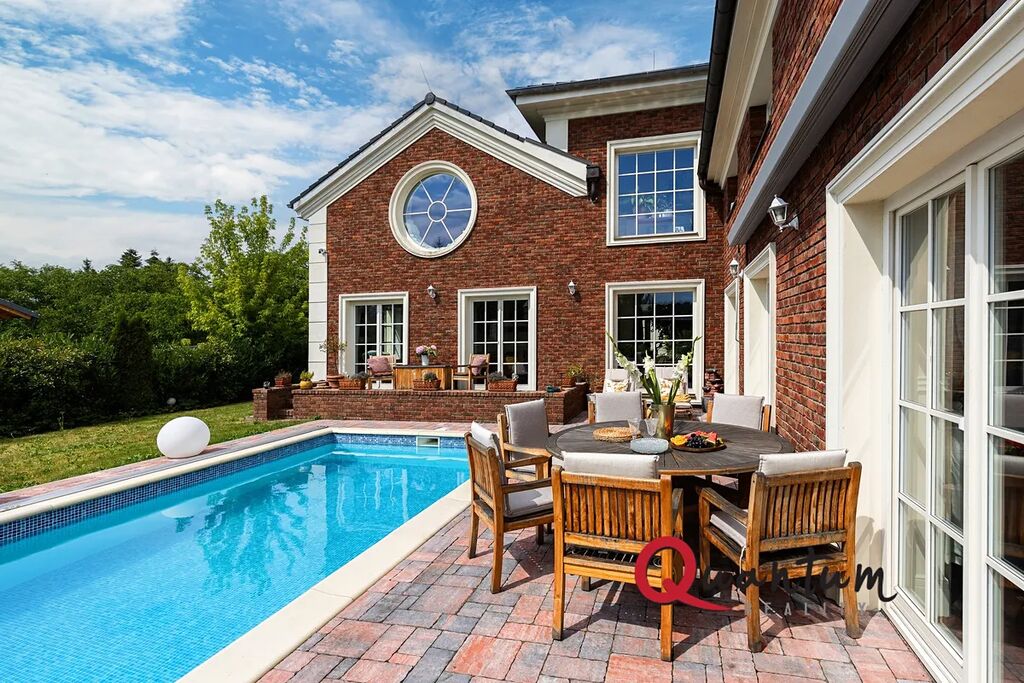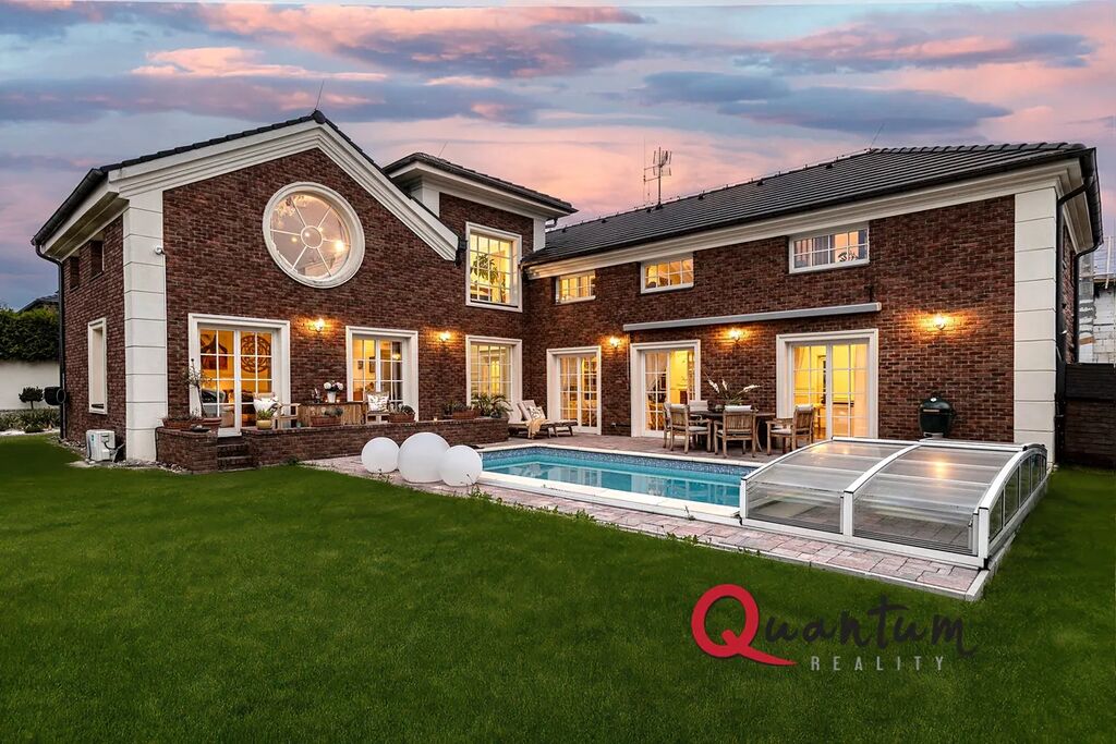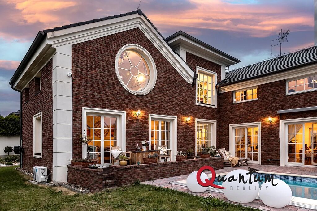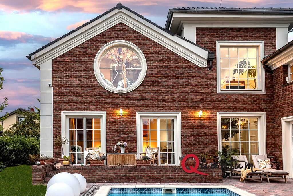 Kvalitní materiály a stylové provedení – fasáda v anglickém stylu, elegantní detaily a propracovaný interiér, který zachovává styl domu.