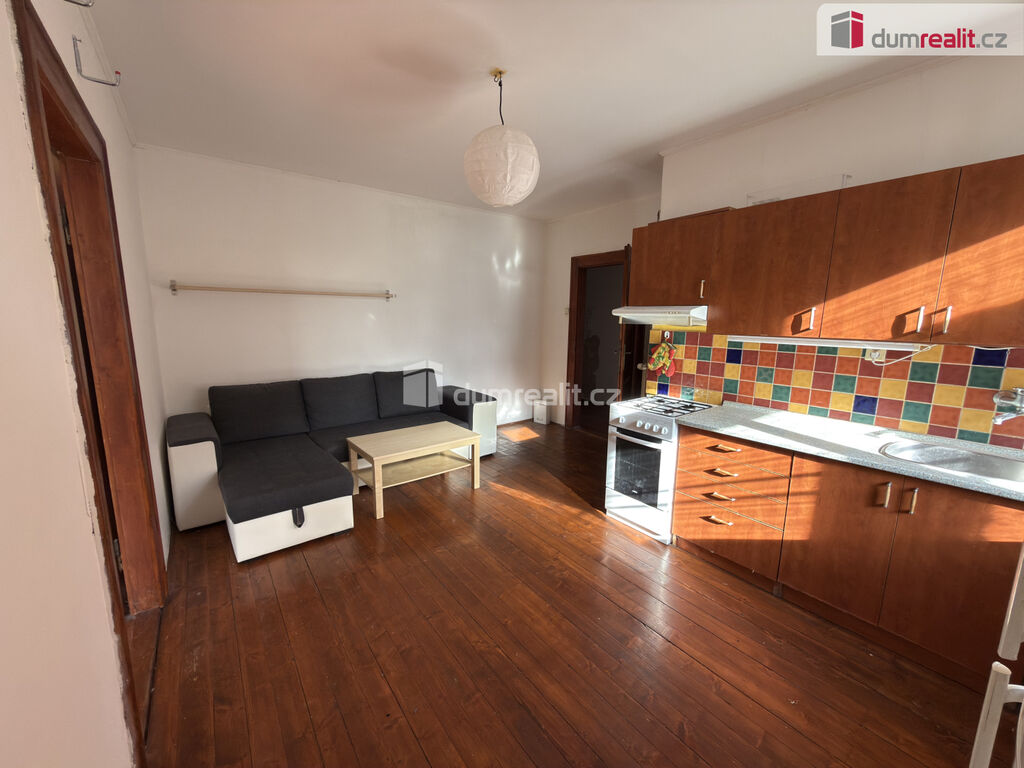 V bytě je vše po staré rekonstrukci a je zde k dispozici sedaci rohová souprava, pračka a lednice.