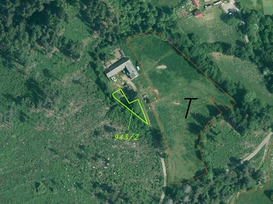 Čkyně v okrese Prachatice. Dle katastru nemovitostí je pozemek veden jako trvalý travní