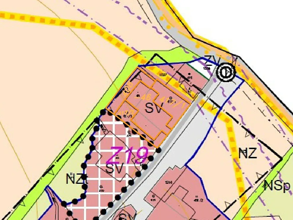 zastavěná plocha a trvalý travní porost. Dle územního plánu se nachází v ploše smíšené