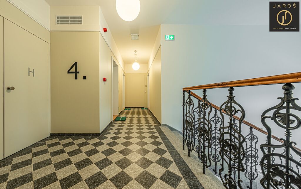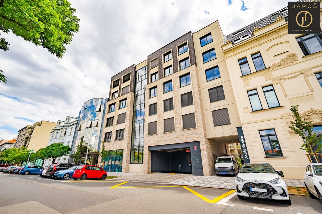 Nechybí ani klimatizační jednotka Daikin, rekuperace vzduchu, venkovní rolety a chytrá domácnost, kterou lze ovládat na dálku včetně klimatizace. Vysoký komfort bydlení doplňuje přístup na soukromou zahradu ve vnitrobloku, která je určena výhradně pro obyvatele domu. Celý areál je zabezpečen kamerovým systémem.