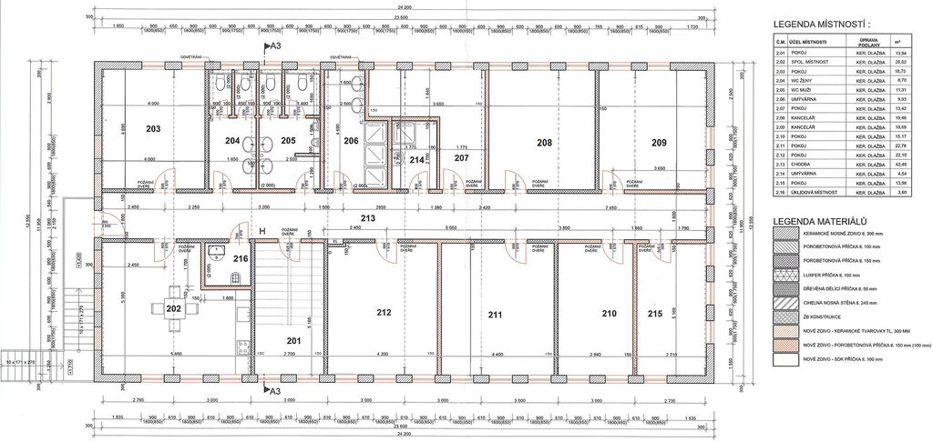 Jedná se o prostorný funkční celek ve 2. NP se samostatným venkovním vstupem se schodištěm, ze kterého se vchází do hlavní chodby na jejíž obou stranách jsou rozmístěny jednotlivé místnosti. K dispozici jsou dvou až čtyřlůžkové pokoje, dvě kanceláře a hygienické zázemí. Prostory jsou bez nábytku.