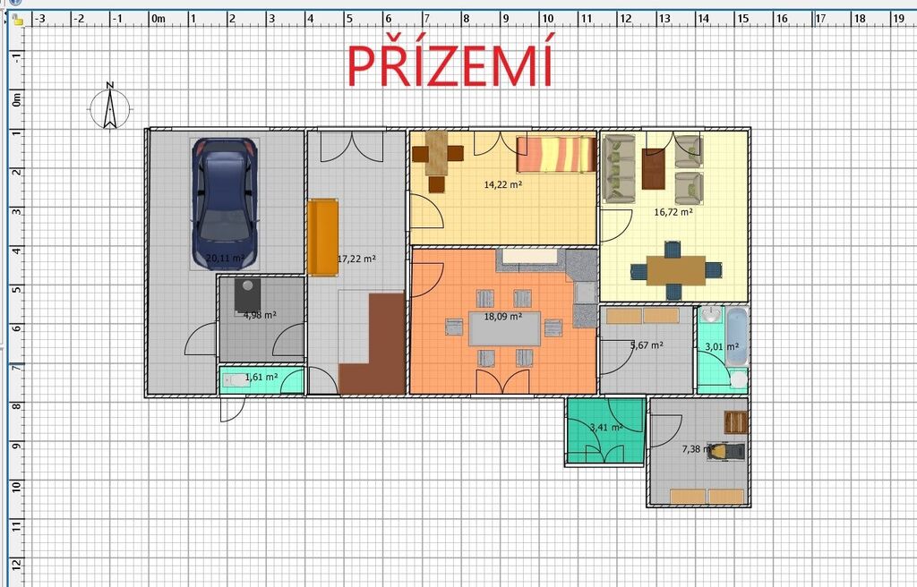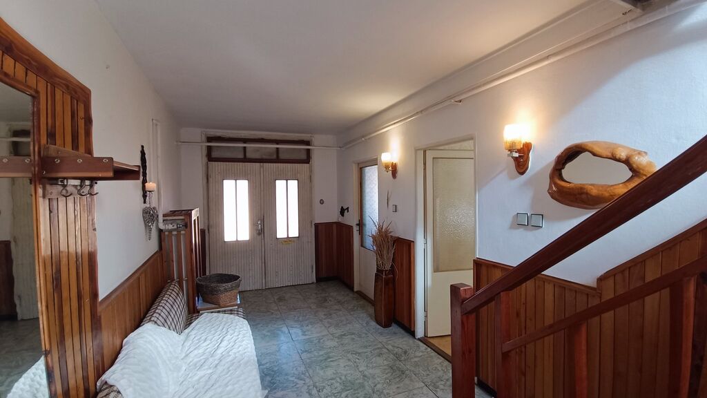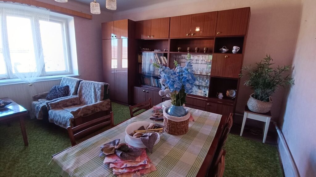 Při vstupu vejdete do prostorné haly se schodištěm do patra a vchodem na dvůr, kde Vás čeká posezení u kávy, dvůr se dvěma velkými sklepy a branka do zahrady. V přízemí jsou dva pokoje 13m2 a 20m2 a kuchyně s plochou 16m2, kde může usednout k velkému stolu celá Vaše rodina. Za kuchyní je místnost pro uskladnění úrody a koupelna s vanou, která čeká na svou modernizaci.