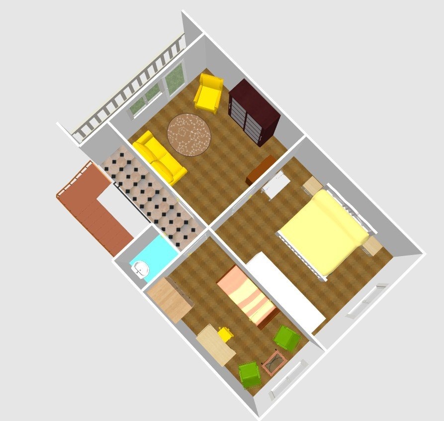 V patře jsou další tři velké pokoje 13m2, 17m2 a 18m2 a další koupelna, po rekonstrukci oken, topení, stěn i podlah, kde krásné lesklé parkety podtrhují útulný interiér. Výhled z balkonu je nejen na dvorek, ale hlavně na zahradu plnou zelně a vzrostlých stromů.