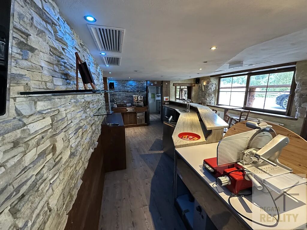 Restaurace se skládá ze 2 místností s kapacitou přibližně 40 míst k sezení, velkého baru, malé kuchyně, prostorného skladu a úložného prostoru (v restauraci) a samozřejmě dámských a pánských toalet a sklepní místnosti. Ideální pro kavárnu/bar s malým občerstvením až pro 40-50 osob. Vytápění je napojeno na centrální biotopný systém, který zásobuje město Bad Kleinkirchheim. Restaurace se nachází v přízemí rekreačního apartmánového komplexu s licencí na catering (nápoje a malá jídla) do 2:00. Bar je velmi elegantně navržen ve stylu italské taverny. Měsíční provozní náklady cca. 650 eur.