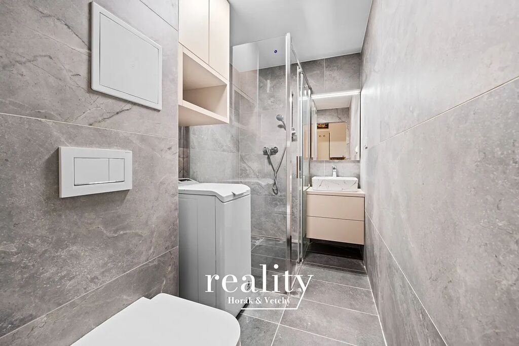 V bytě byla provedena rekonstrukce elektřiny, rozvody vody –rekonstrukce koupelny, ve které je nyní umístěna sprcha s odtokovým žlabem, přípojka na pračku a WC.