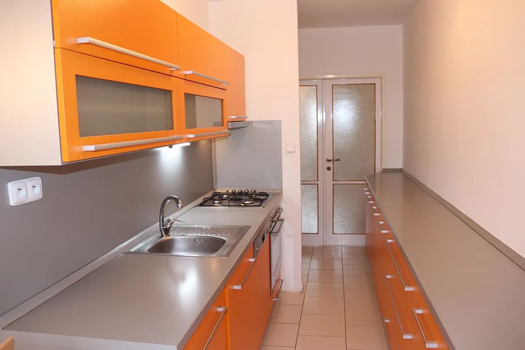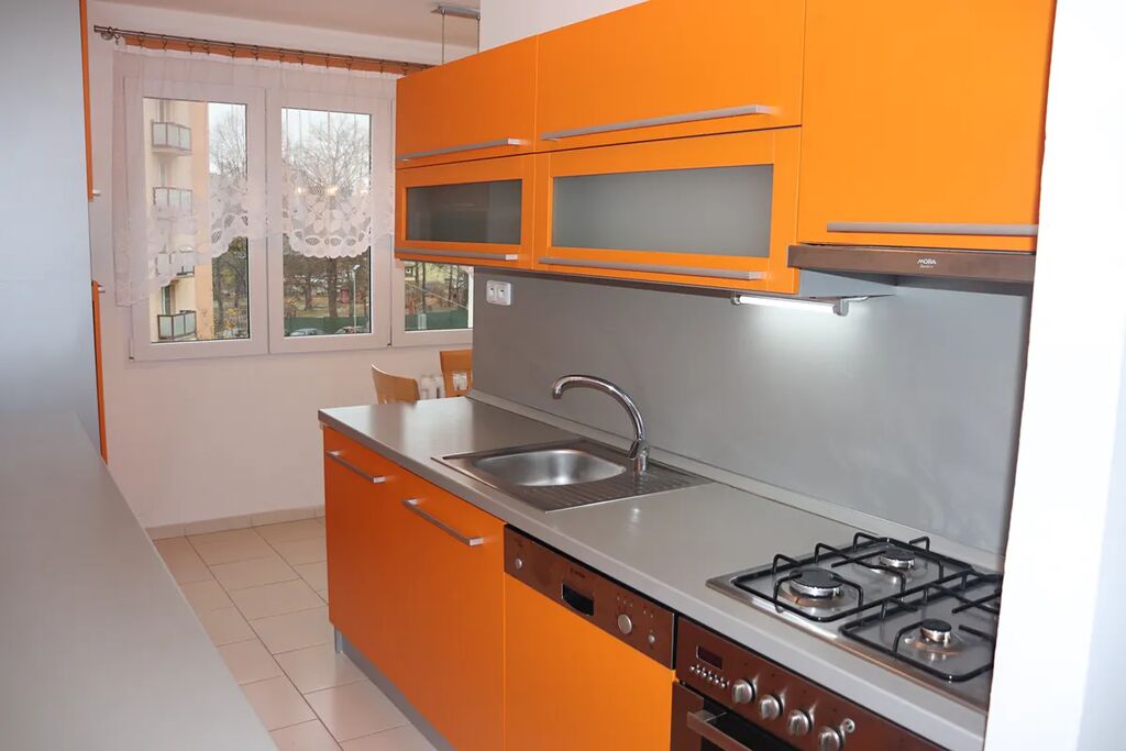 V kuchyni se nachází kuchyňská linka s vestavěnou troubou a plynovým sporákem, myčkou, digestoří a dostatkem úložných prostor. Dále je zde prostor pro lednici a pračku.