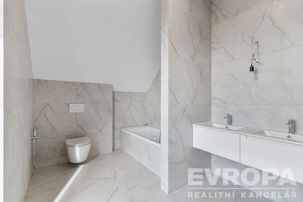 POZOR! JEDNA POLOVINA JIŽ REZERVOVÁNA, ZBÝVÁ POSLEDNÍ DŮM. Exkluzivně nabízím prodej rodinného domu (polovina dvojdomu) s vlastní zahradou. Jedná se o novostavbu domu ve vysokém standardu provedení. Plastová okna s trojskly a HS portály v obývacím pokoji, interiérové bezfalcové dveře, dřevěné lepené podlahy, velkoformátová dlažba v koupelnách. Vytápění plynovým kotlem v kombinaci s podlahovým topením v celém domě. Dům je již zcela dokončen a zkolaudován. Dispozice domu je 4+KK a užitná plocha 129 m2. Každý dům má vlastní zahradu cca 202 m2 (zastavěná plocha jedním domem 84 m2, celkem cca 286 m2 pozemku ke každému domu). V zadní části zahrady je terasa 15 m2 s WPC povrchem a retenční nádrž na dešťovou vodu. V uliční části je zděný plot a na pozemku zpevněná plocha pro parkování 2 aut s elektricky ovládanou vjezdovou bránou a vstupní branka. Jedná se o klidnou rezidenční oblast v zástavbě novějších rodinných domů. V Kostelci nad Labem je široká občanská vybavenost (školy, školky, obchodní centrum, lékárna, sportoviště, restaurace a další) a dobré dopravní spojení do Prahy (autem do 20 minut metro Letňany, autobusem PID 30 min.).