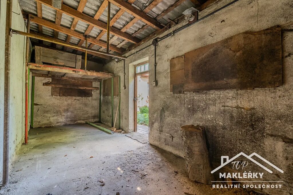 Na tento dům navazuje původní rodinný dům o dispozici 2+1, který je určen buď ke kompletní rekonstrukci, nebo demolici. Na pozemku se dále nachází vedlejší stavby - garáž, kotelna a dílny.