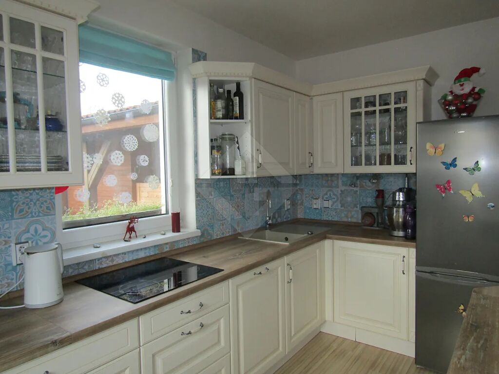 Movitý majetek v domě pro kupujícího – kompletní ložnice vyrobená na míru (manželské postele, vestavěné skříně, noční stolky, koberec), kuchyně – velký jídelní stůl, ostatní dle dohody.