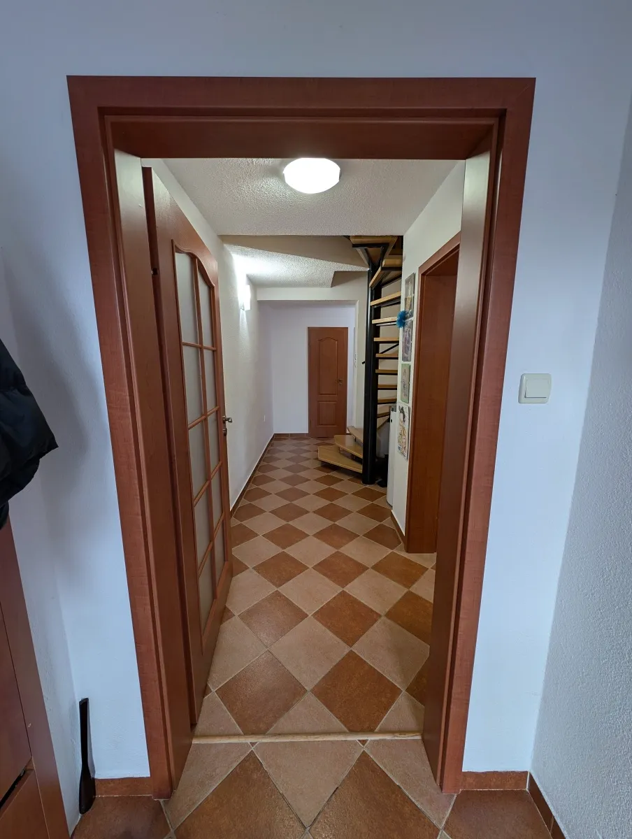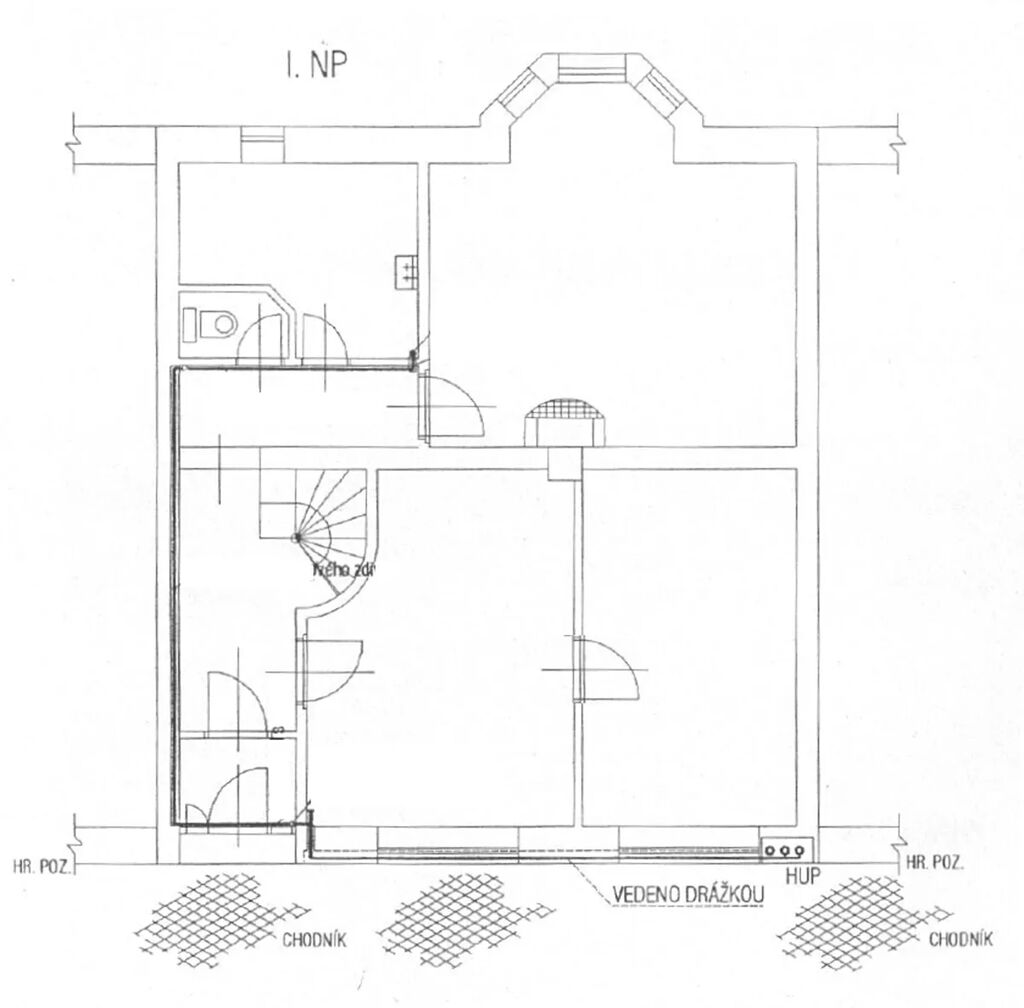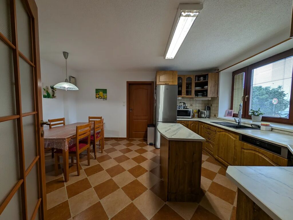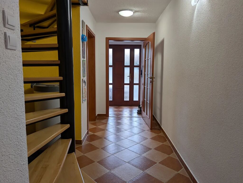 Přízemí: zádveří, kuchyně, pracovna, toaleta, koupelna, obývací pokoj se vstupem na terasu s krytým posezením a zahradu, garáž s dílnou a skladem.