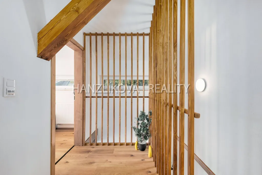 Dům je součástí komorního rekreačního areálu " Venkovské usedlosti Pernek" a byl zkolaudován v roce 2022. Dům stojí na vlastním pozemku o celkové výměře 1381 m2, disponuje užitnou plochou přes 156 m2 a je rozdělen na dvě obytná podlaží. V přízemí se nachází prostorná kuchyně s jídelnou a přímým vstupem na terasu, obývací pokoj s krbem, koupelna a technické zázemí. V podkroví najdete čtyři samostatné ložnice a další koupelnu s WC. Celkově nabízí pohodlné zázemí i pro větší rodinu či rekreační pronájmy. Dům je napojen na el. en. - má vlastní elektrokotel a bojler na ohřev vody, vytápění je podlahové, voda ze společné studny, každý dům má pak svou čističku pitné vody, odpad - septik na vyvážení. Objekt je vybaven moderním systémem vytápění, který lze ovládat pohodlně na dálku prostřednictvím mobilní aplikace. Díky tomu můžete topení zapnout či regulovat ještě před příjezdem a nastavit teplotu v každé místnosti zvlášť podle vlastních potřeb. Dům byl postaven z kvalitních materiálů a zůstává plně vybaven.