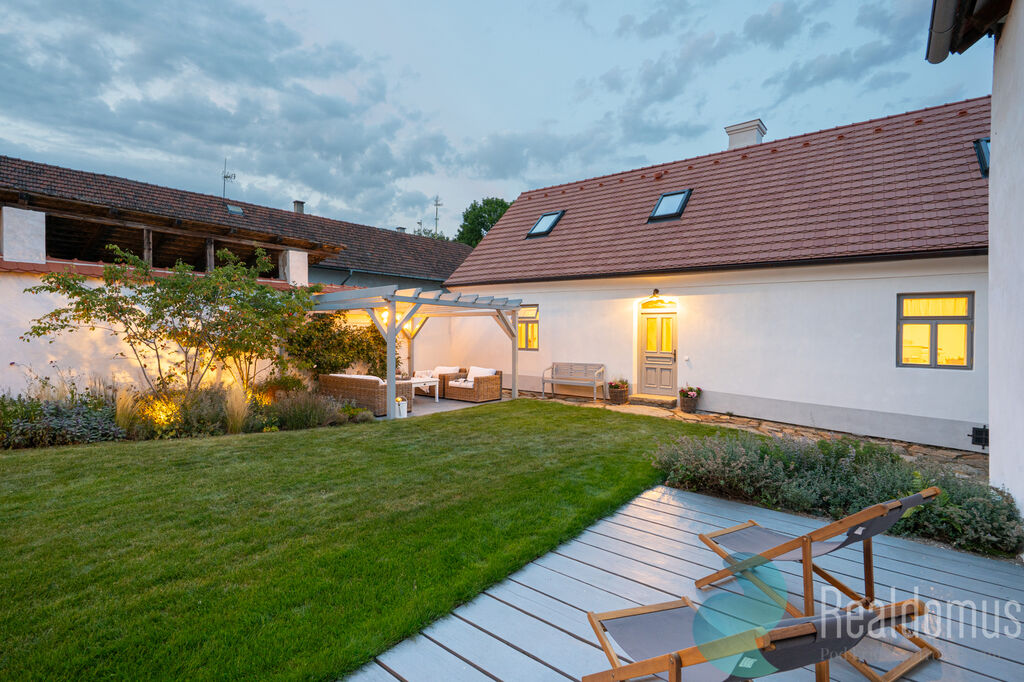 Za zdmi uzavřeného dvora objevíte svět, kde čas plyne pomaleji. V domě se nacházejí tři ložnice, dvě koupelny a prostorná obytná kuchyně, jejíž atmosféru dotvářejí kamna s pecí. Majitelé provedli velmi citlivou rekonstrukci, jejíž podstatou bylo použití tradičních prvků, jako jsou trasvápenné omítky, špaletová okna, dubové podlahy, porcelánové zásuvky a vypínače, ručně vyráběná italská svítidla či retro-sanita, díky nimž si dům uchoval svůj původní historický charakter. Každý detail působí jako malý umělecký šperk – od původního starého dřeva po kvalitní dlažby. Dům je navíc podsklepený a technicky připravený i pro moderní technologie, včetně chytrého ovládání vytápění.