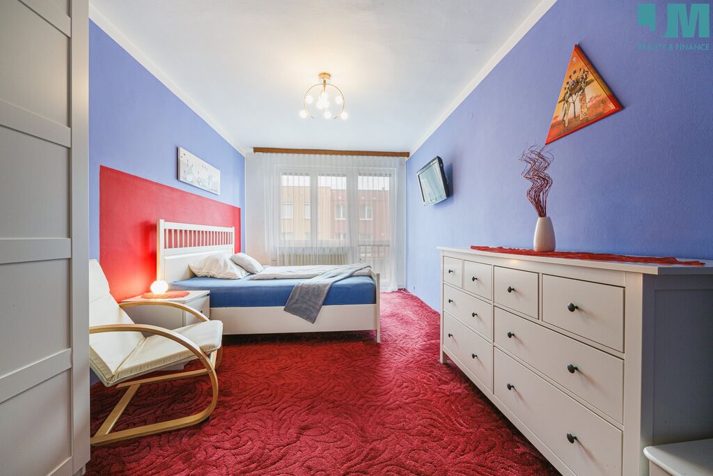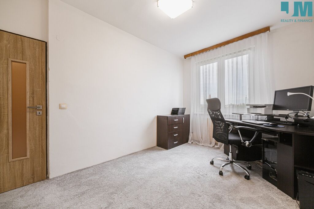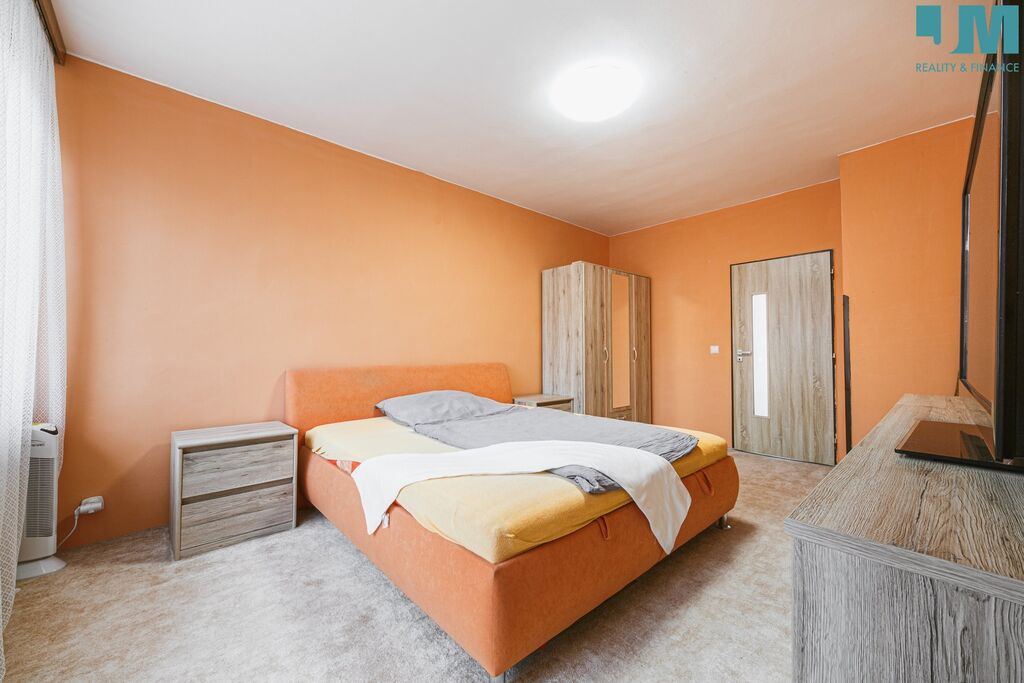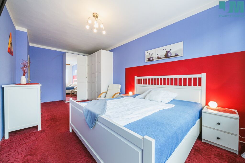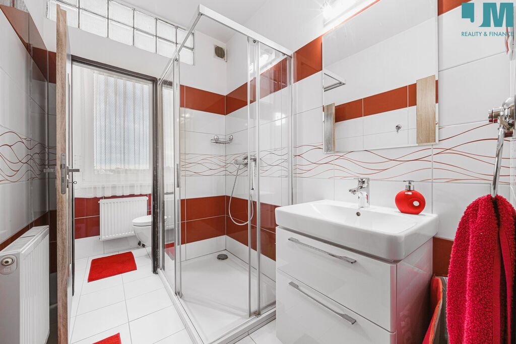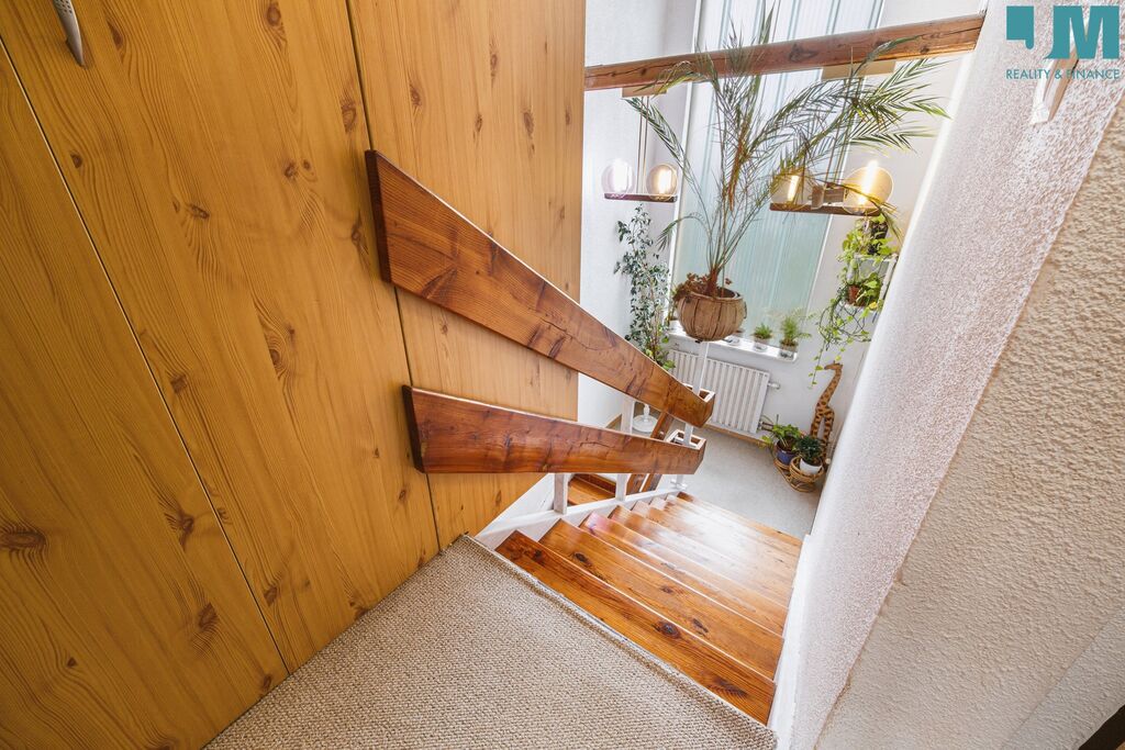 2. podlaží: tři pokoje (18,7 m², 16,8 m² a 11,6 m²), koupelna (3,8 m²) se sprchovým koutem a samostatnou toaletou (1,2 m²). Ze dvou pokojů je vstup na prostorný balkon orientovaný do ulice. V chodbě naleznete vestavenou šatní skříň se zabudovaným přístupem na půdu.