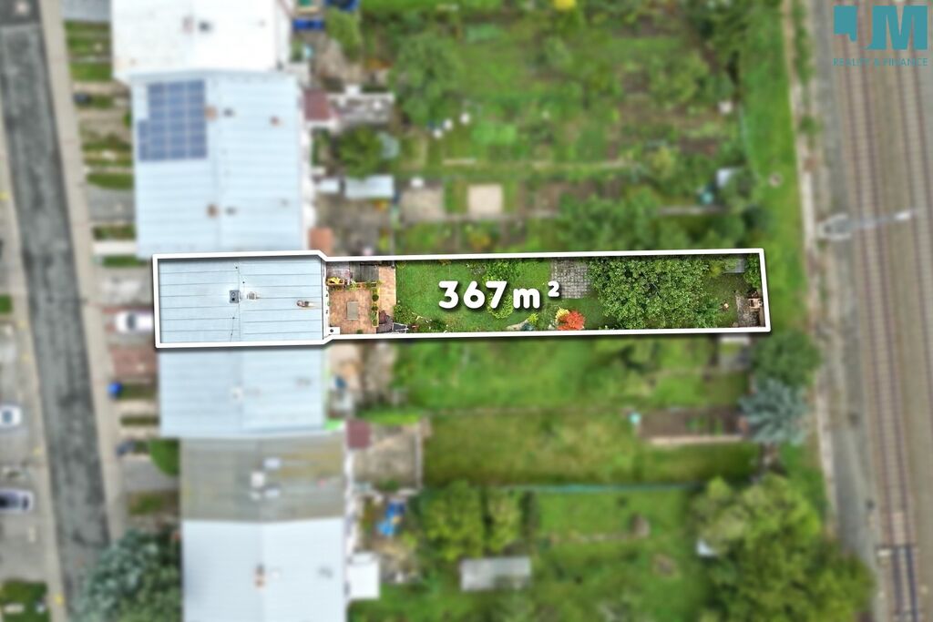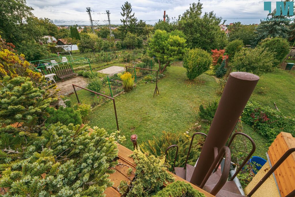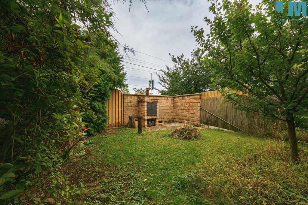 Za domem se nachází zatravněná zahrada se vzrostlými ovocnými stromy a keři, místem k posezení i umístění bazénu. Nedílnou částí zahrady je udírna. Součástí pozemku je i zadní vstup do zahrady.