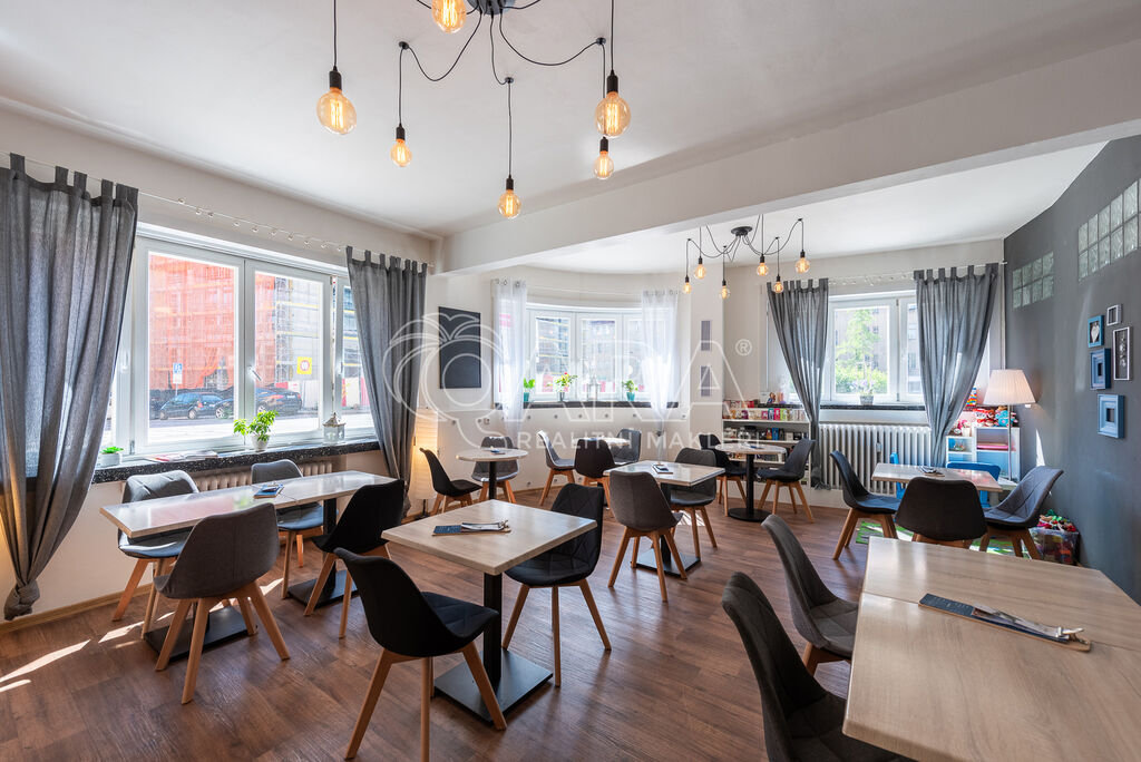 Dispozice: vchod z ulice, prostor kavárny s barovým pultem, kuchyňka a 2 toalety