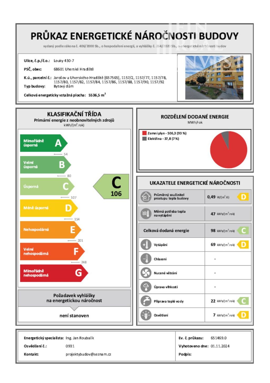 Energetická náročnost budovy je zařazena do třídy C – úsporná.