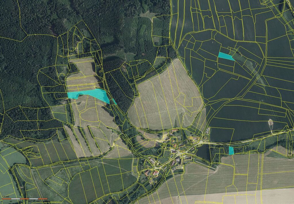 Pozemky jsou vedeny jako trvalý travní porost o výměře 9304 m2 a orná půda o výměře 1978 m2. Výměra je tvořena čtyřmi samostatnými parcelami, po dohodě s vlastníkem je možné odkoupit i jednotlivé části.
