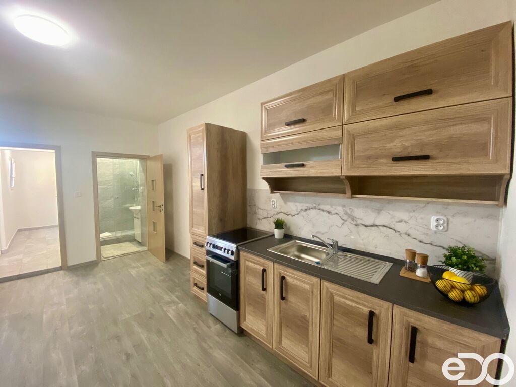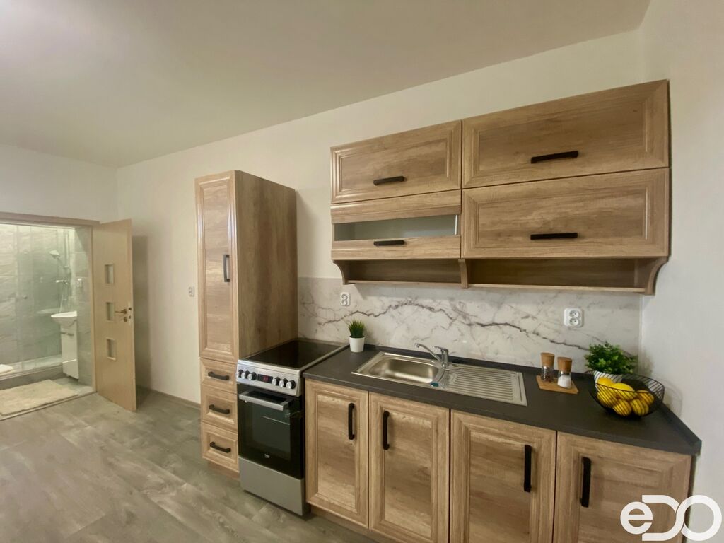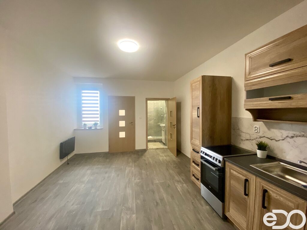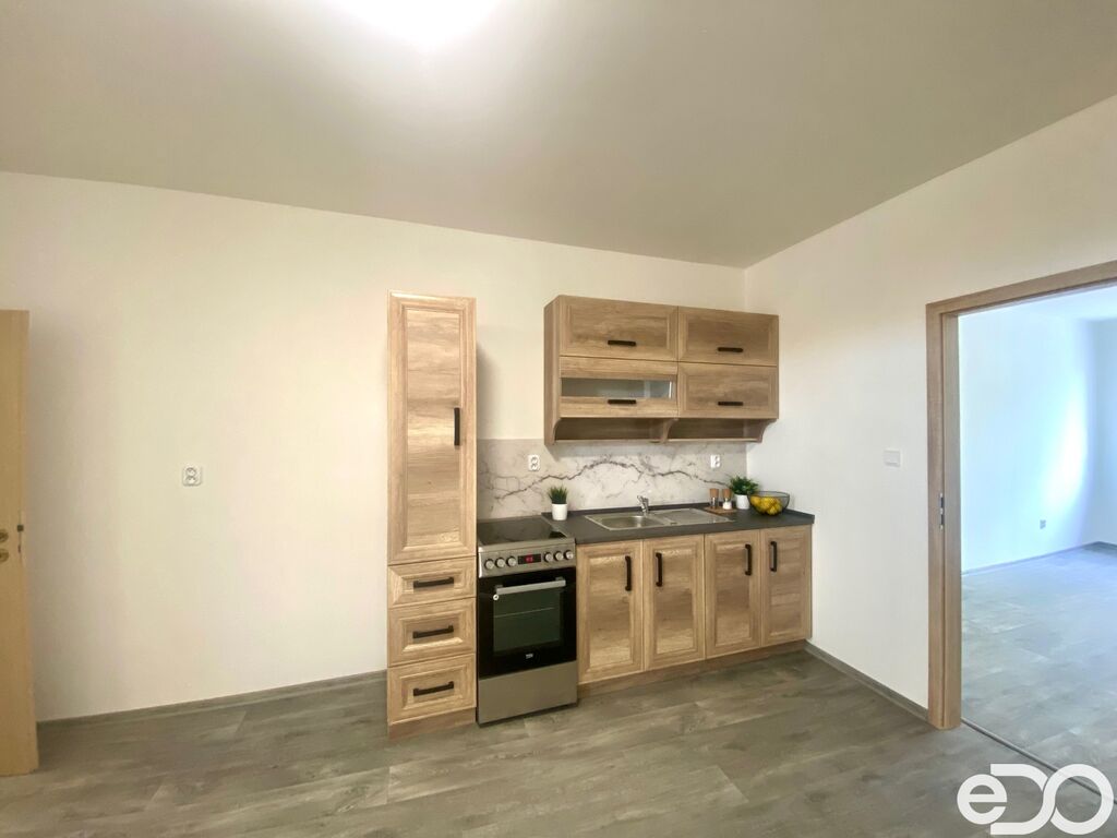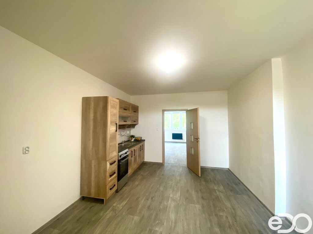 Dispozice: obývací pokoj s kuchyňským koutem, samostatná ložnice, koupelna se sprchovým koutem, samostatné WC, vstupní chodba, komora. Byt je částečně vybavený - kuchyňská linka, elektrický sporák s troubou.