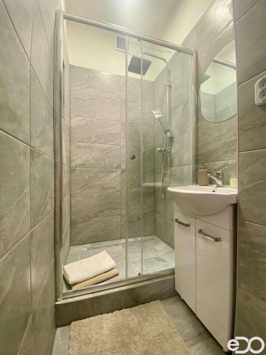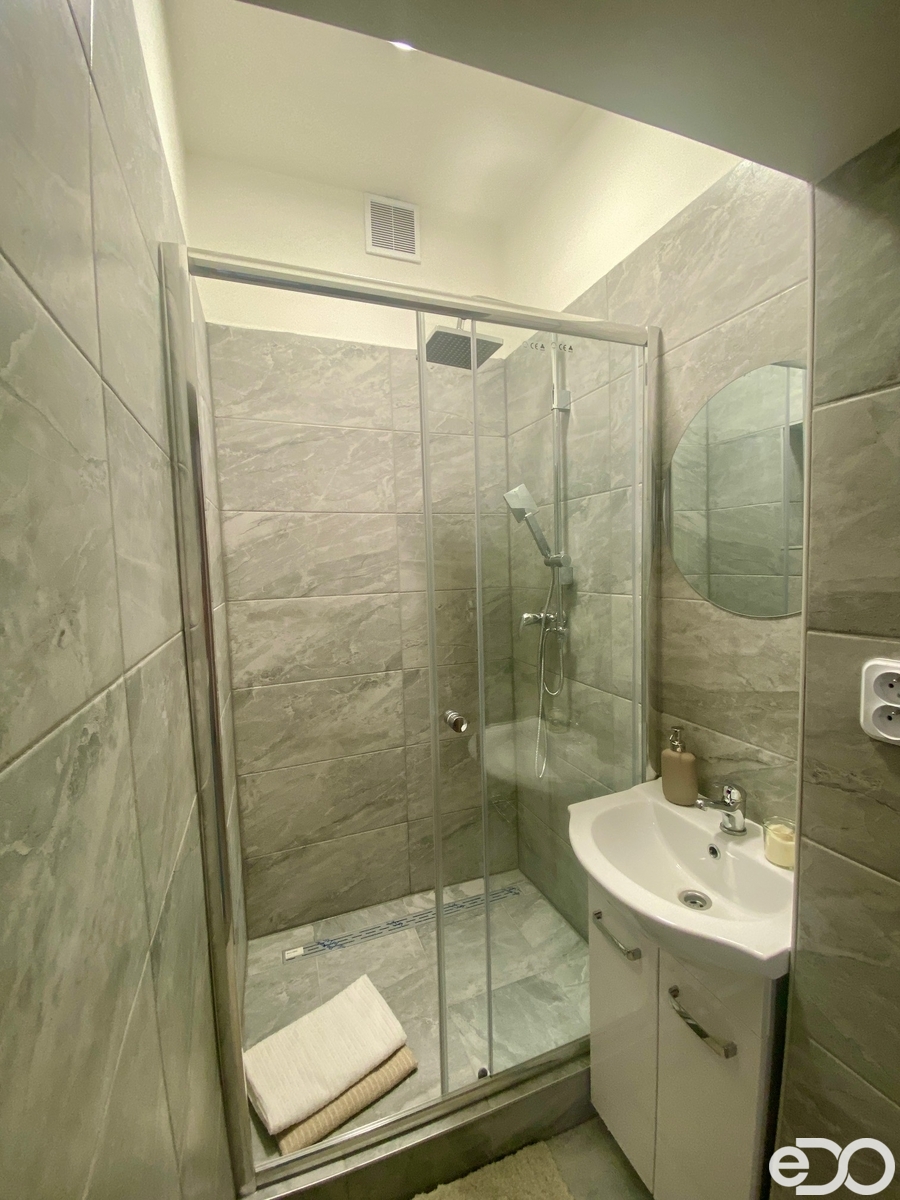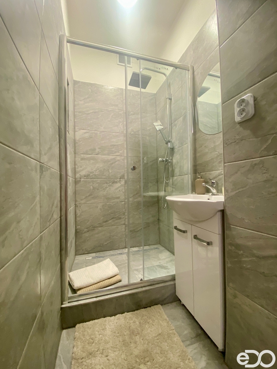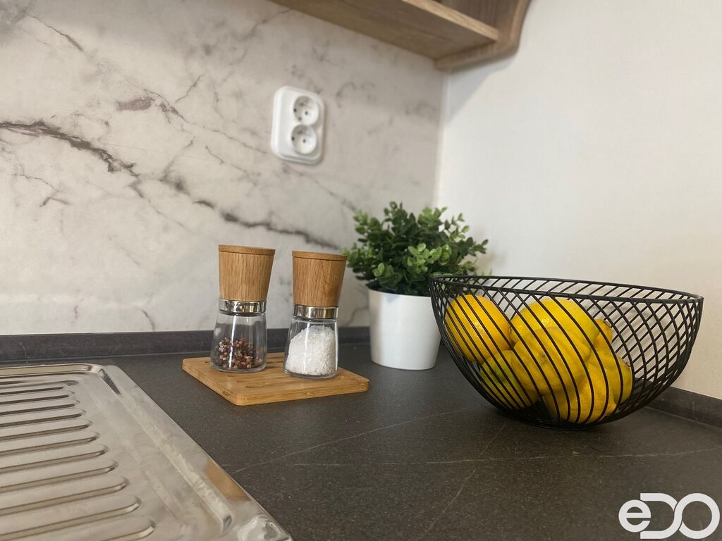 Dispozice: obývací pokoj s kuchyňským koutem, samostatná ložnice, koupelna se sprchovým koutem, samostatné WC, vstupní chodba, komora. Byt je částečně vybavený - kuchyňská linka, elektrický sporák s troubou.